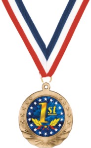 Gold Medal with Ribbon This Medal is available with a 2" insert. Your custom logo and engraving can be added at no extra charge. Free Engraving On All Awards