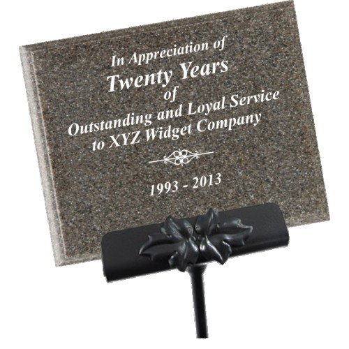 powder-coated steel stake. Marble plaques